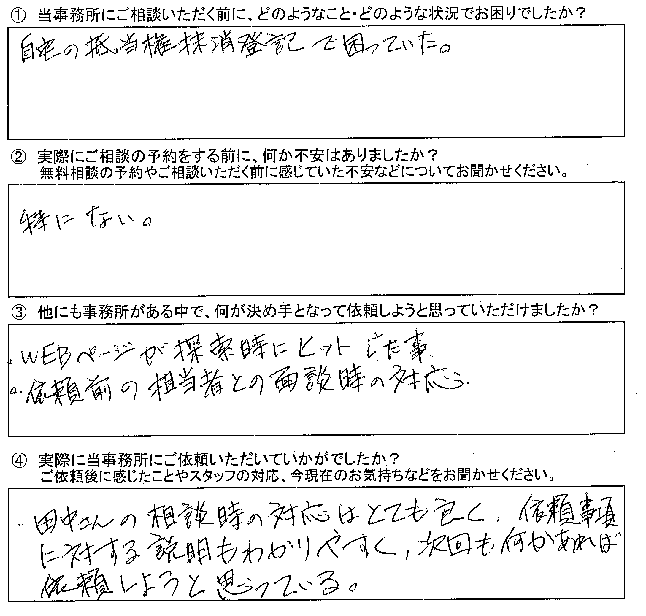 ・自分で手続きをしていたら困っていたであろう調べごとが多々あった。頼んでよかった。